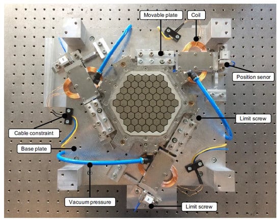 - Spaan-Burke, T.M.; van Dam, T.; Overschie, P.; Spaan, H.A. Contactless Shape Manipulation of Thin Substrates Using Air Bearing Table. In Proceedings of the 2017 ASPE Annual Meeting, Charlotte, NC, USA, 29 October–3 November 2017. [Google Scholar]
