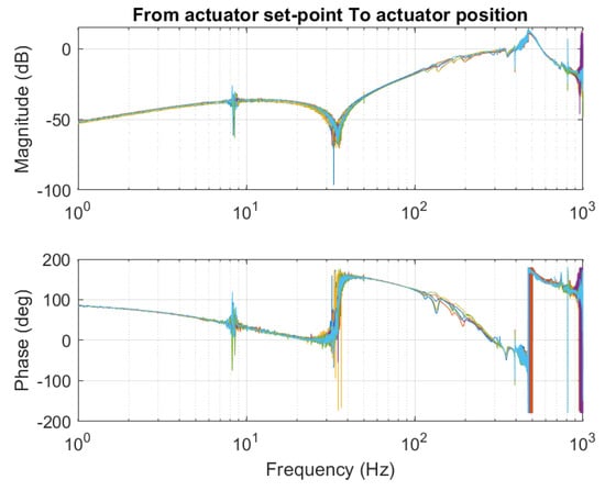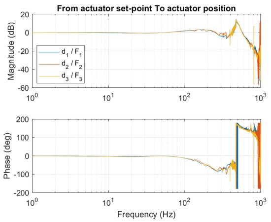 Closed loop frequency response of the actuators, from actuator reference position to measured position.