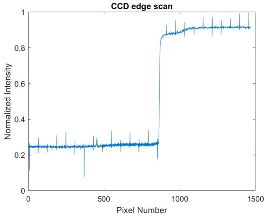 Output of the CCD sensor. It shows the edge of the wafer. The edge is a curve over 10 pixels.