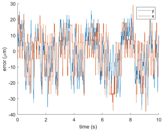 The error at steady-state is shown in Figure 27 with the RMS error values provided in Table 5. The periodic movement is caused by the correlation between the rotation and translational degrees of freedom. This is expected because the dummy wafer is not perfectly round. It must be noted that less rotation was observed during tracking than under steady-state.