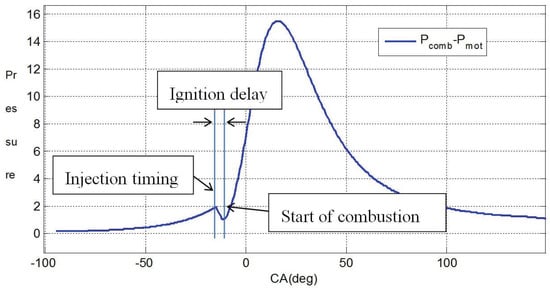 Thus, the ignition delay can be obtained from pressure trace (which can be measured using physical sensors), and combining with other measurable parameters used in Equation (17), the ICOC can be calculated accordingly.