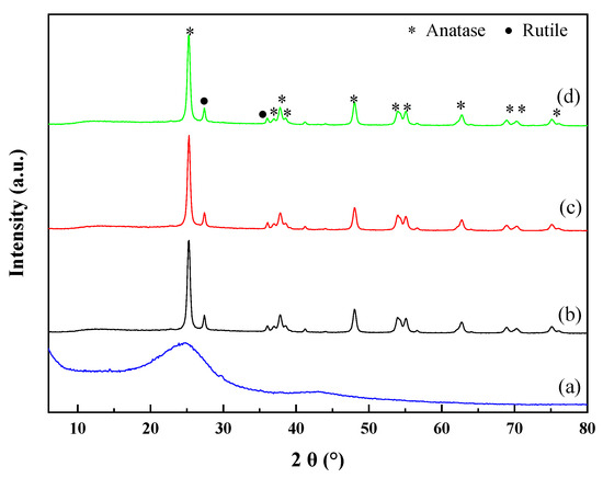 - Liu, F.; Feng, N.; Yang, L.; Wang, Q.; Xu, J.; Deng, F. Enhanced Photocatalytic Performance of Carbon-Coated TiO2–x with Surface-Active Carbon Species. J. Phys. Chem. C 2018, 122, 10948–10955. [Google Scholar] [CrossRef]