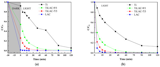 - Paušová, S.; Riva, M.; Baudys, M.; Krýsa, J.; Barbieriková, Z.; Brezová, V. Composite materials based on active carbon/TiO2 for photocatalytic water purification. Catal. Today 2019, 328, 178–182. [Google Scholar] [CrossRef]