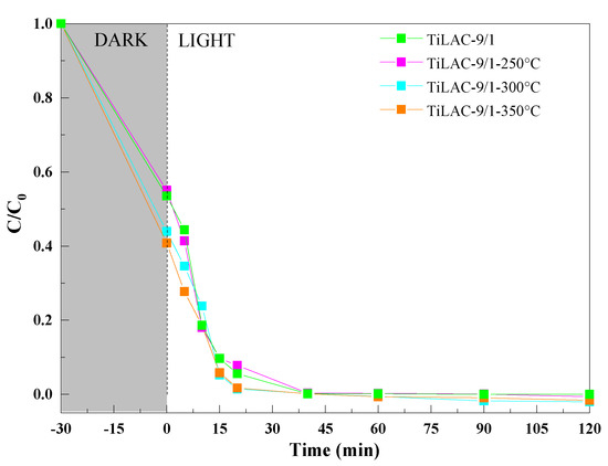 - Alberoni, C.; Barroso-Martín, I.; Infantes-Molina, A.; Rodríguez-Castellón, E.; Talon, A.; Zhao, H.; You, S.; Vomiero, A.; Moretti, E. Ceria doping boosts methylene blue photodegradation in titania nanostructures. Mater. Chem. Front. 2021, 5, 4138–4152. [Google Scholar] [CrossRef]
