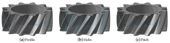 - Lotze, W. Zahnradmessung mit Koordinatenmessgeräten; Eigenverlag: Dresden, Germany, 2005. [Google Scholar]