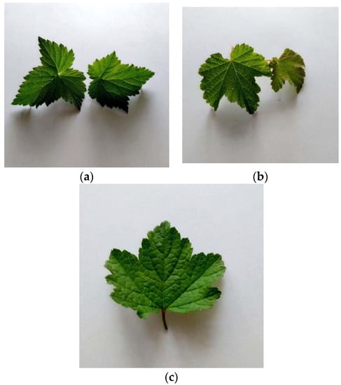 Leaves of black (a), red (b) and white currant (c) shrubs [own sources].