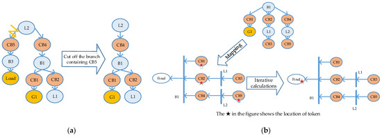 | Step (3) Reconstructing power grid network G1. Only the topological connection of elements in G is retained, all V_e class elements in G1 are initialized. The breaking and closing states (S) of circuit breakers related to protections in P_3 are retained, and the other circuit breakers are initialized. |