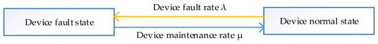 In order to simplify the model, the state space of a single relay protection device (or a circuit breaker) is divided into two categories: device fault and device normal. The state transition diagram is shown in