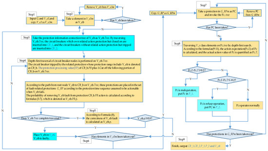Definition 3. Protection processing value: SP. SP is an attribute of protection class to classify action protections. The calculation method of SP has been given in Step 4 of Algorithm 3. When the protection processing value SP of a protection is n, it means that the protection has participated in the fault diagnosis calculation of n V_e elements in V_e3. Therefore, when the protection processing value SP of a protection is no less than 1, it represents that the protection is a processed protection. The protection processing values of unprocessed protections are equal to the initial value 0.
