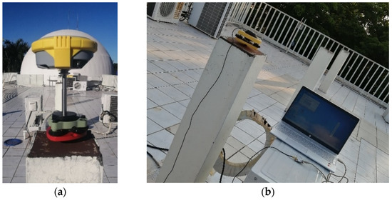 GNSS receivers used: (a) geodetic order receiver; (b) low-cost GNSS receiver.