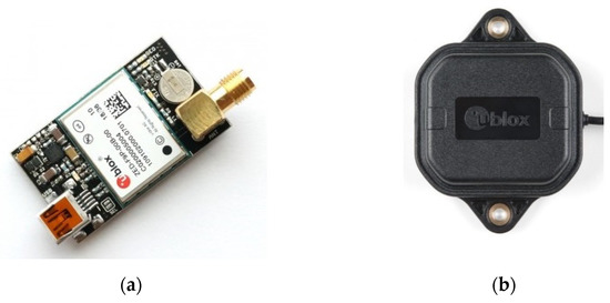 Equipment used: (a) low-cost GNSS receiver; (b) U-Blox antenna.