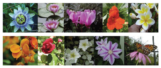 - Nilsback, M.E.; Zisserman, A. Automated Flower Classification over a Large Number of Classes. In Proceedings of the Sixth Indian Conference on Computer Vision, Graphics & Image Processing, Bhubaneswar, India, 16–19 December 2008; pp. 722–729. [Google Scholar]