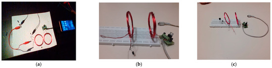 - Cannon, B.L.; Hoburg, J.F.; Stancil, D.D.; Goldstein, S.C. Magnetic resonant coupling as a potential means for wireless power transfer to multiple small receivers. IEEE Trans. Power Elect. 2009, 24, 1819–1825. [Google Scholar] [CrossRef] [Green Version]
