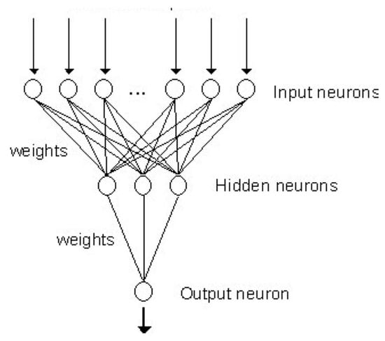 From a theoretical point of view, it might be challenging for farms to invest in fuzzy systems and sensor fusion due to cost considerations. Alternatively, cost should not be regarded as impediments to investments in AI-based systems, considering advances in technology led to the development of cheap and precise networks. For example, a naïve Bayes classifier-feedforward neural network (FFNN) tool was considered useful in monitoring fire risks by Bahrepour et al. [30]. The basic architecture of the FFNN system is depicted in Figure 3. It is clear that the system comprises interconnected nodes, and the back layers/input layers feed the hidden and output layers. On the downside, the potential application of the naïve Bayes classifier-feedforward neural network (FFNN) tool would involve a tradeoff with other metrics of performance, including the accurate determination of weights or learning. Considering that learning is integral in AI-based systems for fire detection, the activity of naïve Bayes classifier-feedforward neural network (FFNN) systems has to be augmented by gradient descent (GD) learning algorithms [30], which might introduce new challenges, especially in cases when it is impractical to integrate GD systems.