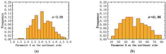 Fitting parameters on the northeast side: (a) parameter A; (b) parameter B.