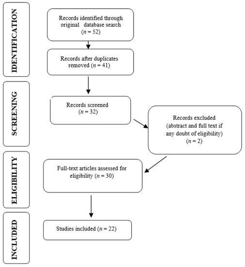 Initially, the search identified 52 articles. The primary analysis of the titles and abstracts eliminated 22 articles, leaving 30 articles whose full texts were examined. A total of 22 articles met the inclusion criteria (Figure 1). The studies were classified into three categories:(1) CO2 Laser Treatment in the Case of Oral Leukoplakia, (2) CO2 Laser Treatment in the Case of Oral erythroplakia, (3) CO2 Laser Treatment in the Case of Oral Lichen Planus. The main outcomes of the clinical studies included in this review were introduced in Table 1.