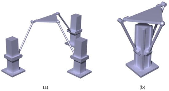 Figure 5a shows the configuration with the radius of the mobile platform smaller than the radius of the fixed platform, while