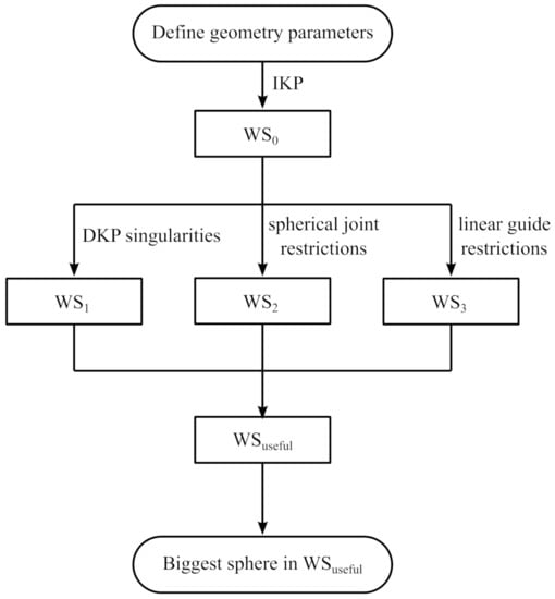 Figure 6 shows the steps we will follow to obtain the useful workspace of the manipulator and the biggest sphere (S