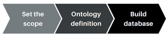 A small number of studies have been published related to ontology engineering methodologies that present design and construction principles. However, to the best of our knowledge, there is not yet a standardized approach or any formal requirement other than the ontology languages defined by the W3C group [10,11] to define an ontology. In the following, a selection of existing works is discussed. METHONTOLOGY [12], On-To-Knowledge Methodology (OTKM) [13], and DILIGENT [14] constitute the basis for many subsequent proposals. For instance, NeOn [2] emphasizes the reuse of existing resources for building a collaborative ontology rather than starting from scratch, such as in METHONTOLOGY [12].
