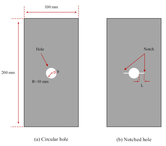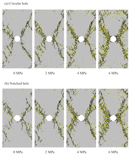 3.2. Failure Evolution in the Circular Hole and the Notched Hole