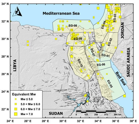 - Badawy, A. Historical seismicity of Egypt. Acta Geod. Geophys. Hung. 1999, 34, 119–135. [Google Scholar] [CrossRef]