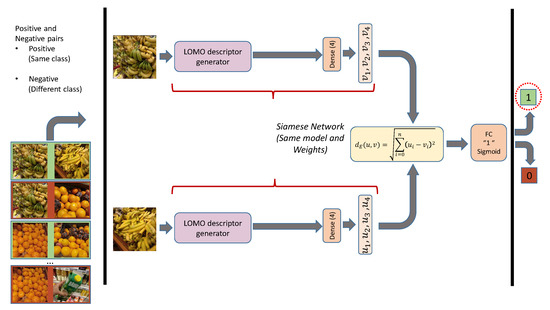 The present paper is structured as follows: Section 2 explores the state-of-art technologies considered in this paper. Section 3 describes the two procedures carried out. The first procedure evaluates different classification models that are valid for the Siamese net and improves the results stated in Grocery Store Dataset [3]. The second procedure presents the Siamese net integrating a ResNeXt-101 [4] and a LOMO descriptor. Different regularization mechanisms are evaluated. In Section 4, the different experiments and results obtained with the system are reported. An overall discussion on the obtained results is set out. Finally, Section 5 notes the advantages and limitations of the presented system and suggests future developments.