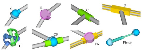 The GIM is a general-purpose software that can to deal with planar and spatial systems of any number of degrees of freedom. This is why the geometry module implements a wide collection of kinematic joints including all the most commonly used ones in practice (Figure 3 and Figure 4).
