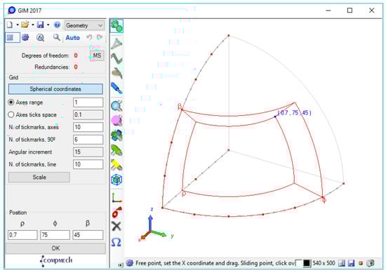 Some of them require the definition of additional geometric information—for example, the orientation of axes of the joint for spatial revolution. In these cases, once more, the student can use the keyboard or the mouse (with or without a grid option). Any joint type can be set as a fixed joint by connecting elements with a fixed frame. Moreover, the most convenient system of coordinates (Cartesian or polar) can be used in the geometric function (Figure 5). The spatial joints and links are modeled as easily as the planar ones.