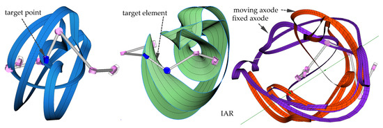 Swept of revolute joint axis swept. Element’s swept. Fixed and moving axodes with the instantaneous axes of rotation and sliding.