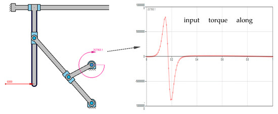 When a direct dynamics problem is computed, the motion is unknown, and simulating it often requires the numerical integration of a system of differential equations because, due to the complexity inherent to the problem, it does not have an analytical solution. This task is programmed in the software, thus students can observe the result (Figure 16). The motion of the mechanism shown in Figure 16 can be visualized in the third video included in the Supplementary Material.