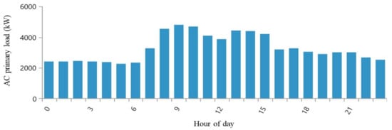 The average daily load profile of annual power consumption shows the periods of peak power consumption from 8:00 to 12:00 and from 13:00 to 16:00, as shown in Figure 5, and the daily power consumption of annual average is 83.1 MWh/day. However, because most of the high power consumption is mainly during the daytime, a PV system with daytime power generation characteristics can reduce the electricity expense (energy purchased from utility electricity).