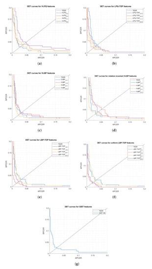 I. The overall PAD mechanism accuracy is determined using BPCER at fixed APCER values. Hence, the most effective feature extractors are selected, then the sensors are compared using BPCER20 (Figure 12);