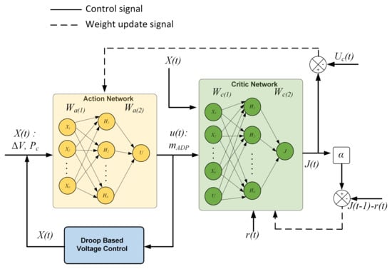 Figure 3. Adaptive dynamic programming (ADP) controller for adaptive droop control with droop-based APC technique.
