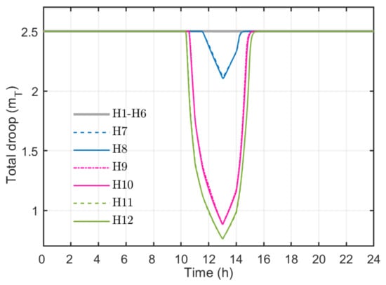 Figure 12. Droop values of twelve houses (House 1 to House 12) in linear droop-based APC method using ADP. Total droop ( m T ) for each house is the sum of constant droop ( m = 2.5 kW/V) and droop adjustment from ADP ( m A D P ).
