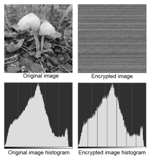 The pixel values would remain unchanged if only the pixel positions of an image were shuffled (see Figure 5). In other words, the histograms of the original and encrypted image would look almost identical, as shown in Figure 5. This was undesirable for image encryption, as an unauthorized user could reconstruct the original image using the data from the histogram. To avoid this, the histogram of the encrypted image should either be very different from that of the original image or in ideal cases, be uniform and flat.