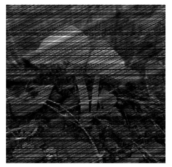 Restored image after decryption of the image shown in Figure 6 with A = 1.0. The black lines in the image represent pixel loss regions.