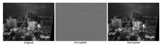A 1280 × 960 photograph example used for testing the present program. Original, encrypted and decrypted images are shown.