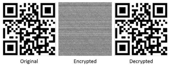 Figure 10, Figure 11, Figure 12, Figure 13, Figure 14 show that the present program can satisfactorily encrypt and decrypt images. There were no significant losses of pixels or resolution in the decrypted images. The QR code example shown in Figure 14 demonstrates that the present program can fulfill stringent decryption requirements, since the restored QR code would not have worked in case of incorrect pixel positions or significant pixel losses.