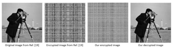 A comparative analysis between image encryption and decryption using our model and those using previously developed methods has been performed. The results from the previous works of Ye [19] and Hua et al. [1] were used in this comparison. The method proposed by Ye [19] was based on pixel scrambling based on the chaotic map, while Hua et al. [1] employed high-speed scrambling and pixel adaptive diffusion to encrypt images. Comparisons between their results and the results from our model are shown in Figure 15 and Figure 16.
