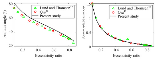 Attitude angle and Sommerfeld number compared with references [45,46].