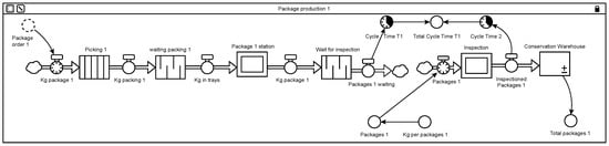 Three model validation forms were performed. First, an extreme condition test was considered where demand of zero packages and model run were obtained; no action was performed in any operation to obtain packages. The simulation of placing zero packages as demand is shown in the charts within the processes without activity, which shows that it complies with the test of extreme conditions [35].