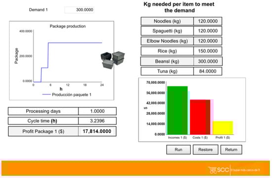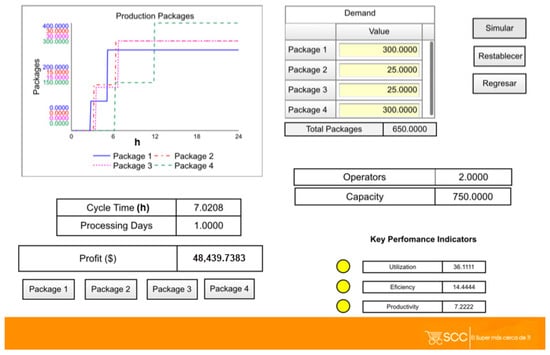 Additionally, by means of this interface, the productive behavior of each type of package can be observed, as shown in Figure 13.