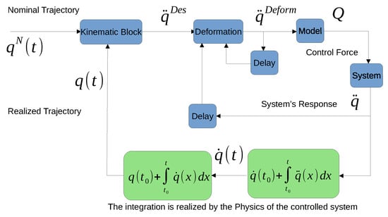 - Instead of the simple CTC control and its robust variable structure/sliding mode-based correction (e.g., [88,89,90]), the “fixed point iteration-based adaptive control scheme” depicted in Figure 1 is applied to compensate the effects of the imprecisions of the coarse grid-based model with the application of the rotations-based adaptive controller announced in [29].