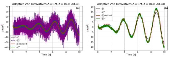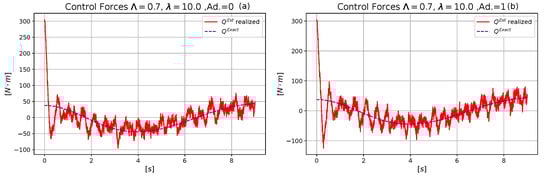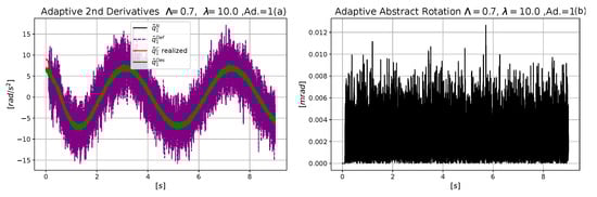 - For the free system, the two dimensional vectors and were augmented to three-dimensional ones of identical Frobenius norms and exactly as it was performed in the rotations-based abstract deformations applied in [29]. In the case of the controlled model the three-dimensional vectors and were similarly augmented to produce the four dimensional ones of identical norms as and in which and were the “dummy components” without any physical interpretation. Their role was to guarantee equal norms.