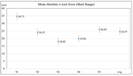 Mean absolute error of depth estimation for each subject in a short-range space.