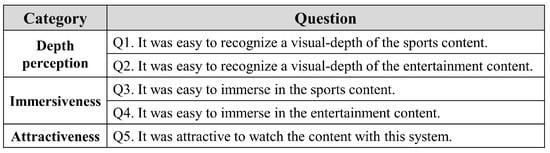 - Depth perception: How much of a stereoscopic degree the user feels in the content.