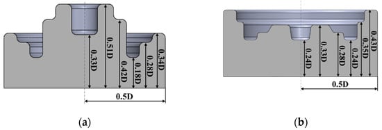 (a) First and (b) second axisymmetric test forging shapes adopted for the validation of the CNN sub-models.