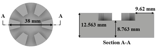 To test the reliability of the proposed approach, a literature case relevant to grinding tool-like forging [26] was considered, as shown in Figure 14. In the considered geometry, two symmetry planes were identified, as shown in Figure 14.