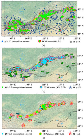 - Gorshkov, A.I.; Soloviev, A.A.; Zharkikh, J.I. Recognition of Strong Earthquake Prone Areas in the Altai–Sayan–Baikal Region. Dokl. Earth Sci. 2018, 479, 412–414. [Google Scholar] [CrossRef]