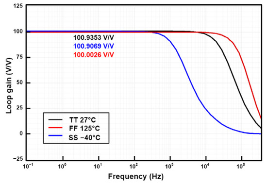 Corner simulation result of the closed-loop gain.